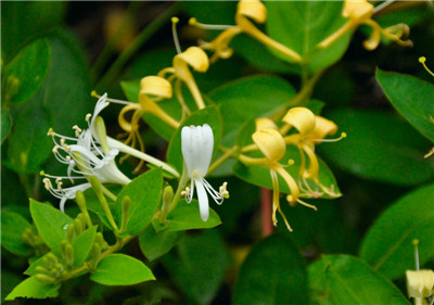 1、扣水~金银花是藤本,不加干涉,它的枝条长得快而长。在盆里,我们可以打破常规,在其春天发芽时,晚上不浇水,早上浇;大水不浇,浇小水;使它的生理用水不能满足旺长的需要,使新生枝条短化和老化。枝条老化就易开花,短化就缩小了节间距离,开花就集中、就繁茂。